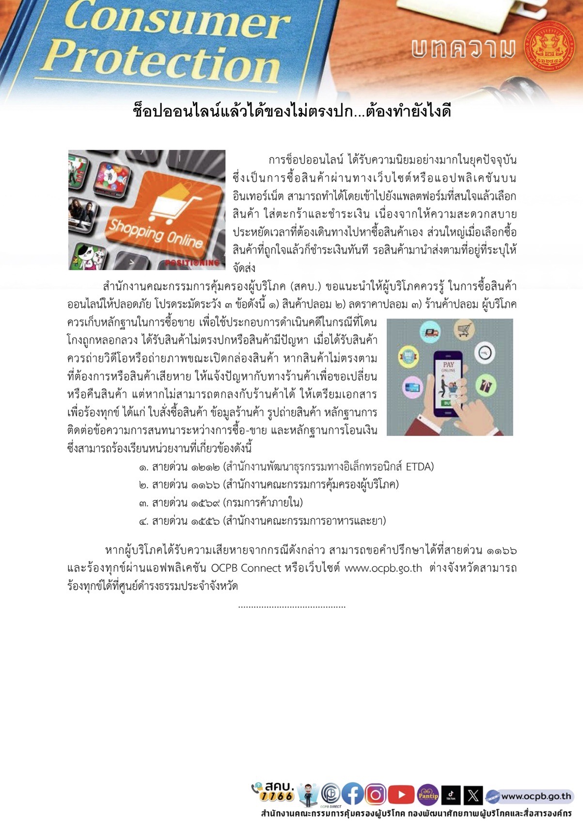 ขอความอนุเคราะประชาสัมพันธ์ข่าวด้านการคุ้มครองผู้บริโภค และอิโฟกราฟิกส์