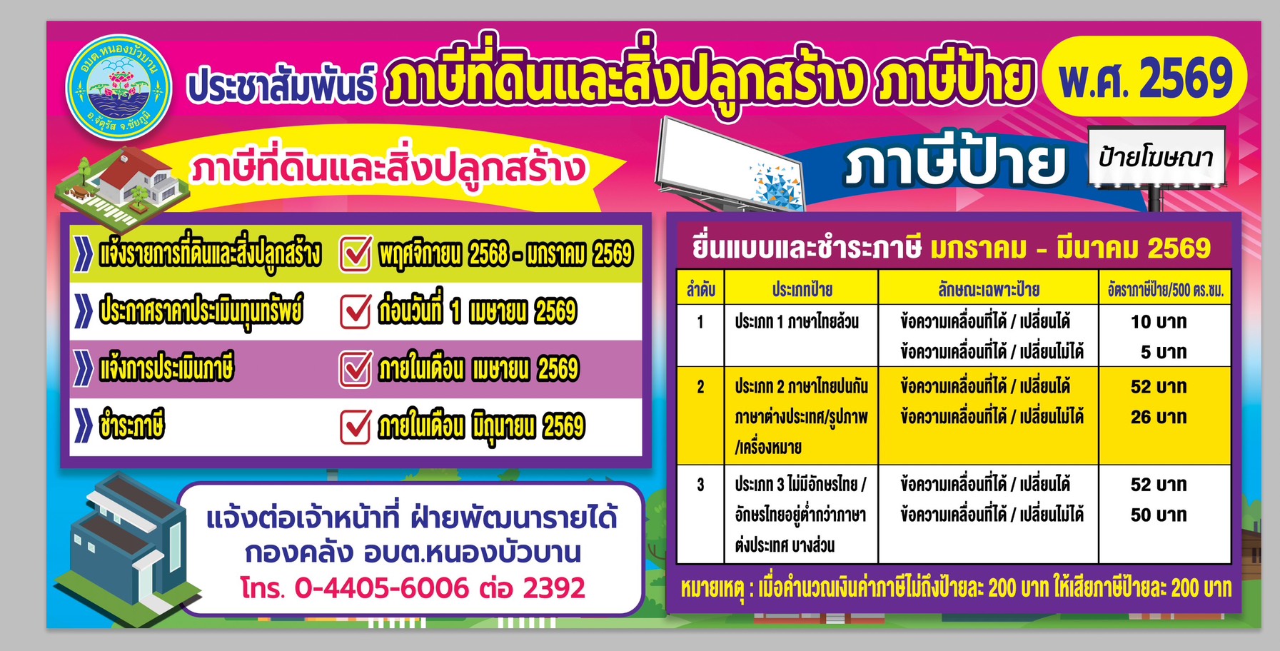 ขยายระยะเวลาการดำเนินการจัดเก็บภาษีที่ดินและสิ่งปลูกสร้าง ประจำปี พ.ศ. ๒๕๖๙