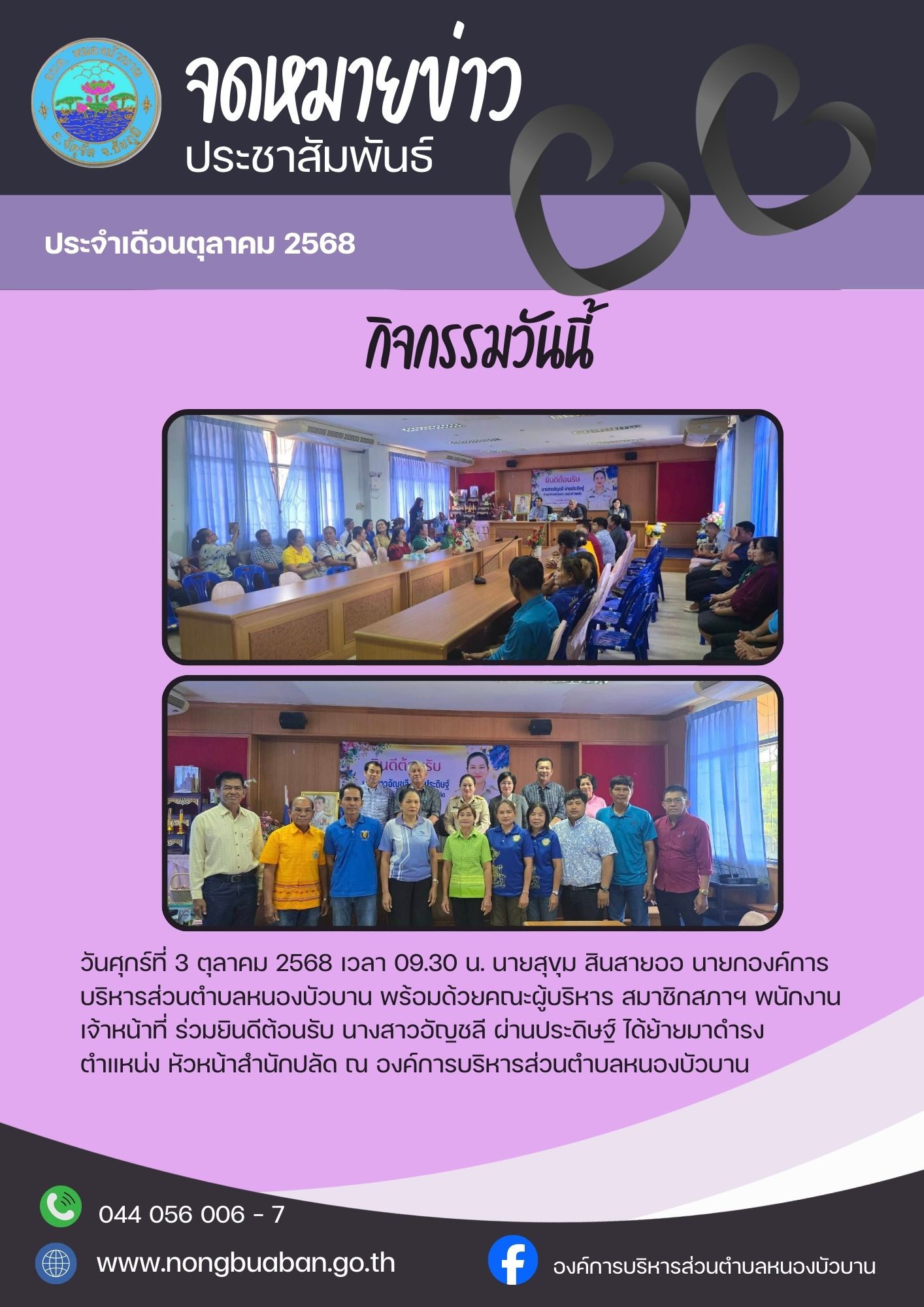 องค์การบริหารส่วนตำบลหนองบัวบาน อำเภอจัตุรัส จังหวัดชัยภูมิ : www.nongbuaban.go.th